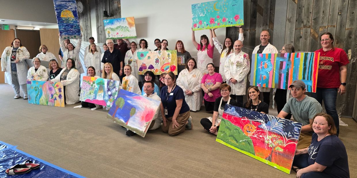 Our mobile art studio goes to offices, corporate retreats, and warehouses to help leadership teams create art, together. These team building activities are barrier free and multi-generational. And, we've never left a paint stain behind!